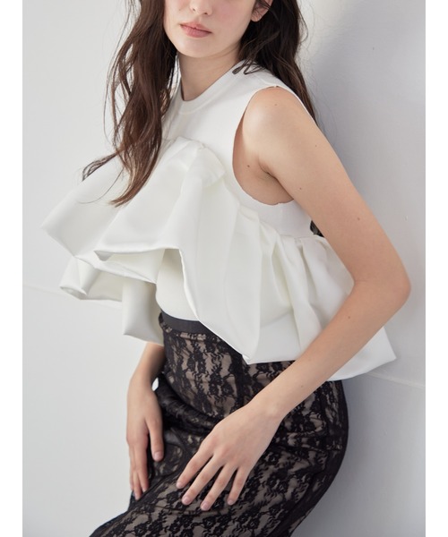 ボリュームフリルニットトップス◆pointボリュームたっぷりの構築的なフリルをドッキングしたニットトップス。バルーンのフリルがトレンド感を引き立てます。◆fabric身頃部分はさらっとしたニット素材を使用し、夏でもご着用いただけます。ピタっと体に密着する伸縮性で、アクティブに動いてもヨレずにきれいにご着用いただけます。フリル部分はマットサテンを使用し、異素材感でモードな印象に。…………………………………厚み:ふつう透け感:なし伸縮性:ややあり光沢感:ややありポケット:なし裏地:なし…………………………………◆coordinateボリュームを生かして、ボトムはタイトにまとめるのがおすすめ。レースのスカートを合わせたら上品デート服に。ショートパンツやミニスカートを合わせたらスポーティな印象に。デニムとの相性も抜群です!◆colorwhite / navy / black- etre loin | エトルワン -フランス語で、もの思いにふけること。大人のためのロマンティックで可愛いを叶えるブランド。♡公式instagram:etreloin■お気に入り登録アイテムのお気に入り:再入荷/ラスト1点/セールなどをお知らせいたします。ブランドのお気に入り:新商品の販売情報などをお知らせいたします。※撮影環境により、実際よりも色味が違って見える場合がございます。また、お使いの端末によって製品と画像のカラーが若干異なる場合もございますので、予めご了承ください。※撮影はサンプル品を使用しており、モデル写真と表示のサイズが若干異なる場合もございます。予めご了承ください。