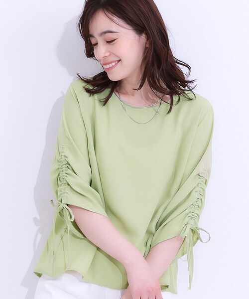 【デザイン】 お袖のシャーリングが引き立つデザインブラウス。 お好みの袖丈にシャーリングを調節していただけます。 麻調の表面感のある特徴的な素材を使用しているので、シンプルなデザインでも存在感のある1枚。 【スタイリング】 同じ素材を使用したスカーチョと合わせてセットアップで着用いただくのがおすすめ。 ワイドパンツやスカートと合わせてきれいめスタイルにもマッチ。 カジュアルな印象のデニムとも好相性。 ※セットアップ可能品番:741-62039 【素材】 麻調スラブの表面感のある素材を使用しています。 【お客様からいただいたコメント】 ・冷たくて肌触り良くて気持ちのよい生地です。すごく綺麗でお袖のワンポイントも大人可愛い!高みえもします。 (身長: 155cm 体型:ふっくら ライトベージュ(051)のLサイズ購入) ・こちらの色はボトムスだけ購入したのですが、セットで買うとお出かけにも着れるなとトップスも購入しました!袖が可愛い (身長: 155cm 体型:ふっくら ネイビー(094)のLサイズ購入) ・袖が可愛くておしゃれです。 (身長: 163cm 体型:やせ型 ネイビー(094)のMサイズ購入) とのお声を頂戴しております。 ※照明の関係により、実際よりも色味が違って見える場合があります。また、パソコン・スマートフォンなどの環境により、若干製品と画像のカラーが異なる場合もございます。 モデル情報:身長165cm B82 W60 H88 着用サイズ:02(M) 店舗へのお問い合わせ商品番号:741-82022 ●製品寸法: 01(S):着丈59cm B100cm 袖丈31cm 肩幅38cm 02(M):着丈61cm B102cm 袖丈32cm 肩幅39cm 03(L):着丈63cm B104cm 袖丈33cm 肩幅40cm 04(LL):着丈65cm B106cm 袖丈34cm 肩幅41cm 備考: