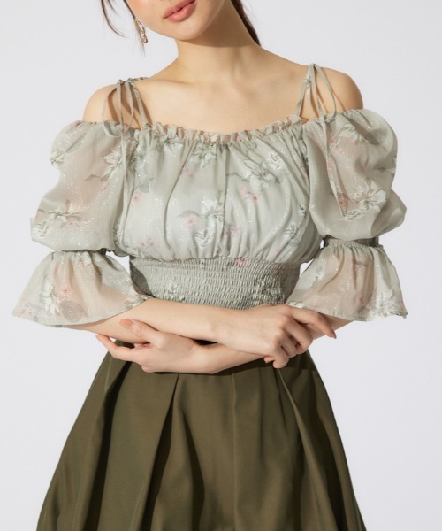 【キラッと輝くフラワーシアーブラウスが完成】 ■ポイント キラッと絶妙なラメ感のある生地にriendaオリジナルフラワープリントを施しました。 ほんのり透ける生地が肌を綺麗にみせてくれ、パフのオフショルダーがレディーな雰囲気をUPさせてくれます。 ■ディテール 袖はオフショルとセットインの2WAY仕様でその日の気分やアウターに合わせて変えられるのも嬉しいポイント。 きゅっと絞られたウエストはオールシャーリングなのでストレスフリーにスタイルアップしてくれます。 ■スタイリング マーメイドやミニのスカートはもちろんデニムアイテムとの相性も抜群です。オフィスカジュアルでも活躍できるアイテムです。 ■生地 透け感:あり 裏 地:あり 伸縮性:なし 光沢感:あり 厚 さ:薄手 ■商品のお気に入り登録 お気に入りアイテムの再入荷・在庫1点などの通知を受け取ることができます。 ■ブランドのお気に入り登録 新作アイテムの入荷や人気アイテムの再入荷、おすすめトピックスなど、いち早くブランドの情報を受け取ることができます。 [注意事項] ※弊社管理上のカラーを表記しており、タグのカラー表記と異なる記載となっている場合がございます。 ※商品画像の色味は、屋外や屋内の光の照射や角度により実物と色味が異なる場合がございます。 ※着用、お取り扱いの際は、アテンションタグをご確認ください。 rienda BRAND CONCEPT 女性らしさに大人なエッジを効かせ 艶やかさに人を魅了させる そんなセンシュアルなデザインを表現 ~The beauty of being yourself is essential~