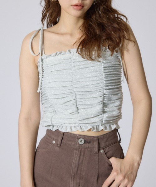 【たっぷりギャザーの入った上品でフェミニンな2WAYビスチェ】 ■ポイント しなやかで丈夫なラメ生地にフロント、サイドとギャザーをたっぷりと入れた立体感のあるトレンドライクなビスチェが登場。 胸元のフリルも、きちんと感のある素材で甘くなりすぎず大人上品な雰囲気で着こなすことができます。 伸縮性もしっかりあるのでフィット感も抜群です。 ■ディティール たっぷりなギャザーディティールで、華やかかつリッチ感のあるアイテムです。 ■スタイリング 肩紐は自由にアレンジできます。 紐はヘッドアクセにしても◎ 肩紐を全て取り外してベアトップスとしても着用可能。 ショート丈なので、さまざまなボトムに合わせてもバランスがとりやすいです。 ■生地 透け感:なし 裏 地:あり 伸縮性:あり 光沢感:あり 厚 さ:薄手 ■商品のお気に入り登録 お気に入りアイテムの再入荷・在庫1点などの通知を受け取ることができます。 ■ブランドのお気に入り登録 新作アイテムの入荷や人気アイテムの再入荷、おすすめトピックスなど、いち早くブランドの情報を受け取ることができます。 [注意事項] ※弊社管理上のカラーを表記しており、タグのカラー表記と異なる記載となっている場合がございます。 ※商品画像の色味は、屋外や屋内の光の照射や角度により実物と色味が異なる場合がございます。 ※着用、お取り扱いの際は、アテンションタグをご確認ください。 rienda BRAND CONCEPT 女性らしさに大人なエッジを効かせ 艶やかさに人を魅了させる そんなセンシュアルなデザインを表現 ~The beauty of being yourself is essential~