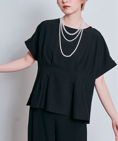 【シワになりにくい】【接触冷感】 メランジツイルぺプラムブラウス -Design- ウエスト部分にタックを施し立体感をプラスした半袖ブラウス。 ひらっと華やかなぺプラムデザインと、くびれを演出してくれるウエストタックが特徴です。 首周りは詰まりすぎないラウンドネック仕様で、抜け感のある印象に。 同生地の「メランジツイルスラックスパンツ」「メランジツイルギャザースカート」と合わせてセットアップでの着用もおすすめです。 -Fabric- 絶妙に色の違う細い糸を織り交ぜた表情のあるメランジツイル生地を使用。 サラッとした肌触りと、まるで着ていないような軽量さで、暑い季節も心地よく着用できます。 シワになりにくく、イージーケアでお洗濯・着用していただけます。 触れるとひんやりと冷たく感じる特性がある生地を使用しています。 ------------------ 透け感:なし 厚さ:中薄地 伸縮性:あり 裏地:なし ポケット:なし ------------------ 【W:Huku】 時計の分針のように刻々と変わりゆく服【Huku】のトレンド。 そんな時代に生きる私【W】は、時針のようにのんびりでもいい、急がなくてもいい。 けれど、変化を受け入れる強さがある。 Don’t be afraid of time changes. 【注意事項】 ※平置き・メジャー採寸ですので若干の誤差が生じる場合がございます。 ※撮影時のライティング、ご覧になっているモニター・pc環境により実際の商品と色味が異なって見える場合がございます。 ※機械による生産過程において商品によっては染料の性質上、多少の生地を織る際の糸の継ぎ目・繊維が混紡・ほつれ・接着剤付着・臭い等が生じる場合が御座います。 ※生地や素材の特性上、匂いが感じられるものもございますが陰干しなどで匂いはほとんど感じられなくなります。 ※商品をお安く提供させて頂く為、検品後のアイロン掛けは省略させて頂いております簡易梱包の為、たたみシワがあると思いますが、ご了承ください。 ※ご注文いただいた予約商品のお届け時期の確認は、注文履歴ページより行えます。 ※他のキャンペーンにより、期間中に価格が変動する場合があります。 ※セールは予告なく終了させていただく場合もあります。