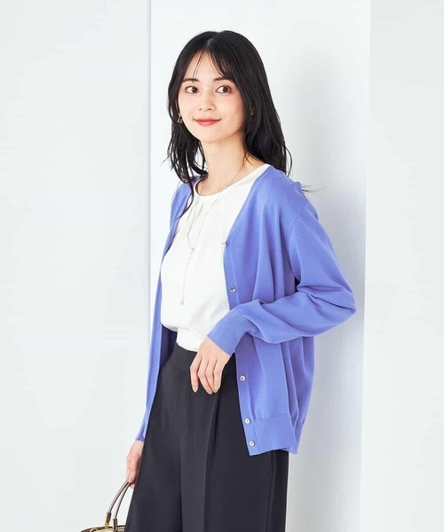 ◆夏の美ラクるニットが登場!暑い時期にピッタリな機能付き◆ 【デザイン】 ・定番Vネックカーディガンが新色で登場! ・ほどよい開きのVネックがコーデに取り入れやすく顔回りすっきり見え ・コンパクトすぎないサイズ感も着やすいポイント ・同素材ニットとのアンサンブル着用が可能 ・色違いで欲しくなる豊富なカラーバリエーション ・持ち運びもしやすく、旅行やお出掛けにもマストの一枚 【素材】 ・目の詰まったきれいな表面感が高見え ・夏に嬉しい接触冷感&UVカット機能付き ・ドライタッチで快適な着心地 ・お手入れしやすいマシンウォッシャブル 【コーディネート】 同素材ニットとのアンサンブルスタイルはきれいめ見え間違いなし。 通勤時にもおすすめ。 羽織としてはもちろんプルオーバーとしても活躍。 肩掛けにしてスタイリングのアクセントとしても◎ ベーシックなデザインなので、カジュアルからフェミニンまでさまざまなアイテムと好相性。 【美ラクるサマーニットシリーズ】 ◆クルーネックサマーカーディガン:K2CGA20049 ◆Vネックサマーカーディガン:K2CGA21049 ◆クルーネックサマーニット:K2FGA20039 ◆Vネックパフスリーブサマーニット:K2FGA59039 ◆ボートネックパフスリーブサマーニット:K2FGA69039 ◆フレンチスリーブ美ラクるサマーニット:K2FHA30039※素材は異なります -------------------- 透け感:なし(ホワイトは淡い色のインナー着用がおすすめです) 裏地:なし 伸縮性:あり 光沢感:なし 生地の厚さ:ふつう -------------------- ≪お気に入り登録機能の使い方≫ ■商品のお気に入り登録(ハートマークをクリック) 再入荷通知や値下げ等、お得なご案内を受けることができます。 -------------------- ※商品画像は、光の当たり具合やパソコンなどの閲覧環境により 実際の色味と異なって見える場合がございます。 商品の色味の目安は商品単体の画像をご参照ください。