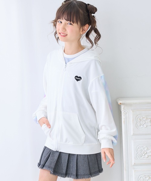 ・万能に使える薄手ジップアップパーカー ・薄手なので、冷房の効いたところ等での体温調節にピッタリ!(持ち運びにもおすすめです) ・どんなボトムにも合わせやすい黒とオフの2色展開 ・袖のタイダイプリント切替と胸元の刺繍がおしゃれポイント ーーーーーーーーーーーー ①生地の伸縮性・・あり ②生地の厚み・・薄手 ③透け感・・ややあり ④裏地・・なし ⑤ポケット・・あり ーーーーーーーーーーーー ※ご覧のモニター環境や撮影環境により実際の商品と多少色味が異なって見える場合がございます。 【Amourire girl(アムリールガール)】 普段から着られるカジュアルなアイテムから、特別なお出かけの日に着たいおしゃれアイテムまで、 ちょっと背伸びをしたいティーンガールズに向けたアイテムを展開するブランドです。 着回し抜群なトップスやチェックのセットアップ、おしゃれなワンピースなど、 シーンに合わせて着回せるアイテムが多数登場します。 【お気に入り登録がオススメ!】 ●商品のお気に入り登録 「在庫残りわずか」の通知や、「完売カラーの再入荷」、「セール」の通知を受けることができます。 ●ブランドのお気に入り登録 新商品や再入荷等、ブランドのお得な情報を受け取る事が出来ます。 【使用上の注意】 ※洗濯ネット使用 ・濃色は洗濯の際、多少色落ちする場合がありますので他の物との洗濯はお避けください。 ・浸け置き洗いは避け、洗濯後はすぐに形を整えて干してください。 ・汗や湿った状態での摩擦により、色移りする恐れがあります。