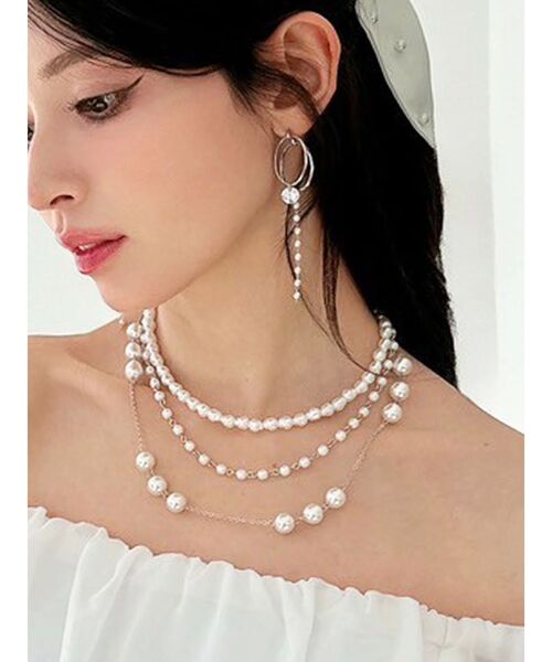 大きさの異なるパールがたっぷり使われたネックレス。プラスワンで存在感を放ち、ネックレスを主役にしたいデザインは、オケージョンシーンからデイリーユースまで幅広くお使いいただける万能アイテムです。