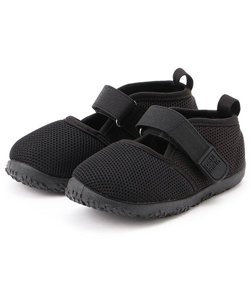 通気性のあるメッシュ生地を使用したシンプルなサンダルです。ストラップ部分はお子さまがラクラク扱える面ファスナー仕様。低めのソールで動きやすいのも魅力です。ベーシックな雰囲気なので、デイリー使いに活躍します。