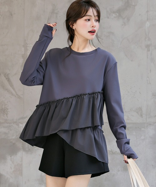 【紫外線遮蔽率 99.9%以上】 レディース水着 長袖ダブルペプラムフリルラッシュガード+ハーフパンツ 上下2点セット 水陸両用 体型カバー