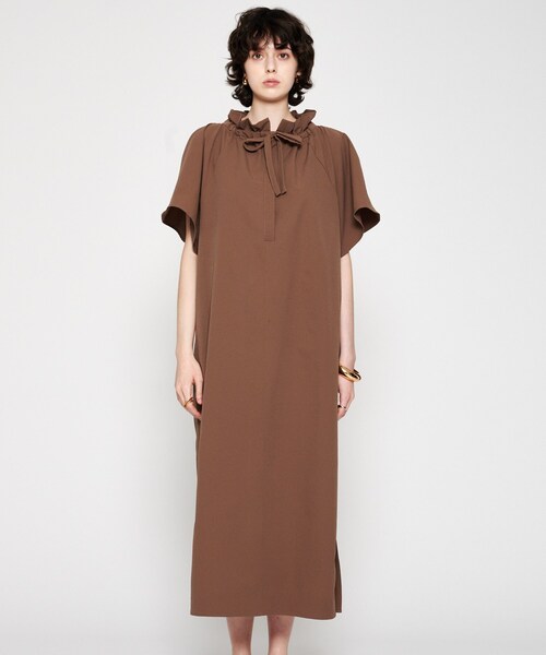 リボンデザインが大人フェミニンに魅せるワンピース 【デザイン】 ・フリルネックが女性らしさを引き立てる華やかな一枚。 ・首元のリボンディティールでフェミニンなエッセンスをプラス。 ・すとんとした落ち感のあるシルエットですが、ラインを拾わないのがうれしいポイント。 【素材】 ・軽やかで生地感で着心地も軽く快適。 ・シワになりにくく、お手入れ簡単な素材が魅力。 ※手洗い可 【着こなしポイント】 ・サンダルやスニーカーで、大人カジュアルスタイルに。 ・ミニマリストなバッグを合わせて、洗練されたモード感を演出。 ーーーーーーーーーーーーーーーーーーーーーーーーーーーーーーーーーー 気になるアイテムはお気に入り登録がおすすめ! お気に入り登録で、再入荷通知やお値下げ情報をお知らせ。 お得な情報をいち早くお届けいたします! アイテムページにある、ハートマークをクリックして追加できます。 ーーーーーーーーーーーーーーーーーーーーーーーーーーーーーーーーーー ※照明の関係により、実際よりも色味が違って見える場合があります。また、パソコン・スマートフォンなどの環境により、若干製品と画像のカラーが異なる場合もございます。 店舗へのお問い合わせ商品番号:R91-52012 ●製品寸法: 01(S):着丈122cm B115cm 裄丈41cm 02(M):着丈123cm B118cm 裄丈42cm 備考: