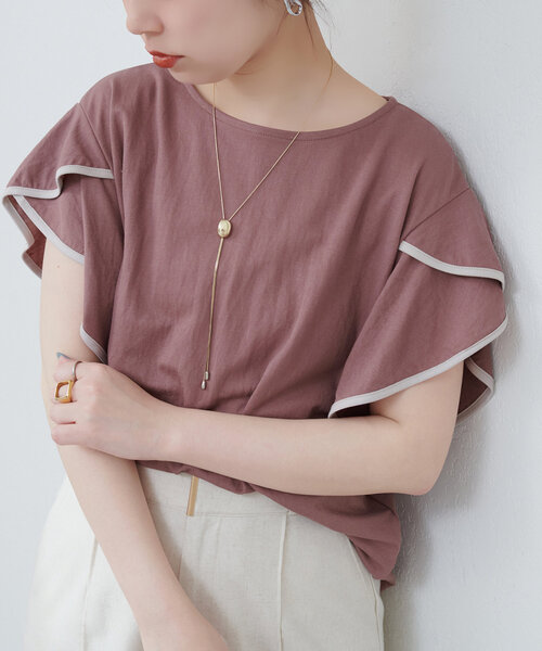 【2025SS natural couture】 接触冷感配色ラッフルスリーブプルオーバー ■Design 華やかなフリルがコーディネートのポイントになるトップス。 配色でアクセントをつけ、カット素材で大人カジュアルな印象に。 ひんやりとした肌触りの接触冷感素材で、これからの季節にぴったりな1枚です。 ■Styling シンプルなデニムにウエストアウトでさっと合わせて、アクセサリーでポイント使いすれば、 大人レディなカジュアルスタイルに仕上がります。 マーメイドシルエットやフレアラインのスカートにウエストインして頂くと、女性らしさが引き立つ上品スタイルに◎ キャミワンピースやサロペットのインナーとして、フリルをポイント見えさせても◎ ■Fabric 接触冷感素材のさらっとした生地感。 =================== お手入れ方法:マシンウォッシャブル 透け感:淡色系ややあり 裏地:なし 伸縮性:ややあり 光沢感:なし 生地感:さらっとした生地感 =================== ※着用、お取り扱いの際は、商品に付いている品質表示とアテンションタグを必ずご確認ください。 【お気に入り登録でお得な情報がいっぱい】 ・「商品のお気に入り登録」で再入荷通知や、ラスト1点の通知、セール通知をいち早く受け取ることができます。 ・「ブランドのお気に入り登録」で新商品や再入荷など、お得な情報を受け取ることができます! ※店舗の入荷時期は商品によって異なります。 店頭の在庫状況につきましては各店舗にてお問い合わせください。 ※撮影時の光の関係で、画面上の画像と実際のお色とでは若干の色差が生じる可能性がございます。 また、ご覧いただいているモニター画面や、お使いのブラウザによっても、お色の違いがございますことをあらかじめご了承くださいませ。 20250411 2025SS_natu 25SS