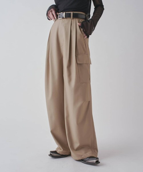 《 Lui's FEMME(ルイス ファム)オリジナル25SSコレクション 》2タックカーゴパンツ●デザインフロントにタックが2本入っているデザインで、腰回りカバーも◎カジュアルすぎない生地なので、キレイめなスタイリングにかっちりハマります。裾にドローコードがあり、絞らずスラックスとしても使っていただけますし絞ることでシルエットが変わり、幅広いスタイリングで楽しんでいただけます。●素材艶っぽい素材感で、しわになりにくいです。カーゴデザインですが、キレイめに履いていただけます。しっかりとした生地感なので、オールシーズンで履けるパンツです。●スタイリングLui’sらしいシアートップスの合わせはもちろん、シャツやTシャツとの合わせが相性抜群◎**********************透け感:なし裏地:なし伸縮性:なし光沢感:普通生地の厚さ:普通**********************【ブランド】Lui's FEMME(ルイス ファム)凛とした芯のある女性。 自立した、女性のワードローブをイメージ。洗練されたかっこよさの中に、女性らしさ・かわいさ・セクシーさを持つ。自分自身のスタイル(自分らしさ・個性・生き方・感覚...)を表現できるひとつの手段としての服。肩肘張らない、心地よいリラックス感のあるスタイルを上質な素材、優雅なシルエットで提案。 《商品画像について》ご覧頂いている商品の写真につきましては、できるだけ実物の色に近くなるように努めておりますが、お使いの環境(モニター、ブラウザ等)の違いにより、色の見え方が実物と若干異なる場合がございます。 予めご了承ください。《予約商品について》・こちらの商品はサンプルでの撮影・計測となっております。実際の商品とは、商品の一部仕様が変更になる場合がございます。・撮影サンプル品はブランドタグがついておりません。製品にはタグがつきますので、製品の表に縫い糸が見えたり、着用時にタグが透ける場合がございます。・サンプルの為、混率の詳細が確定しておりません。確定次第、記載いたします。・工場の生産の都合上、納期が変更になる場合がございます。発送日の前後についてはあらかじめご了承ください。・入荷状況により、お客様への発送が店頭販売より遅れる場合もございます。・店頭に陳列していた商品も含まれる場合がございます。《ハートをタップして商品のお気に入り登録》登録カラーの商品の「残りわずか」「再入荷」「値下げ」通知を受け取ることができます。各ショップアプリにてブランドフォロー 新商品などの入荷情報、最新のニュースやお得な情報を受け取ることができます。