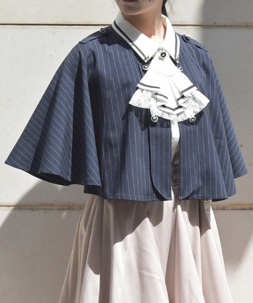 【アイテム説明】 ふわっと装飾品のように纏えるケープ 【デザイン】 シーズンレスで着られる袖なしのケープです。 メッキ使いがワンポイントに。 中心のホックで簡単に着脱することが可能です。 ブラウスの上から、ワンピースの上から纏って装いたくなるアイテムです。 【コーディネート】 軍服のようなミリタリーテイストからクラシカルなテイストまで幅広くコーディネートに合わせられます。 ▽ axes femme * アクシーズファム 【Concept】 axes femmeのお洋服であなたのライフスタイルに ほんの少しだけ彩る花が咲きますように。 ブランドを通して、彩る花たちが、 人と人、お客様や作り手たちの想いが世界中に繋がっていきますように。 ベル・エポック(フランスの古き良き時代)にパリジェンヌたちが愛したファッションや文化にルーツをおき、 独自のフェミニンスタイルを楽しむブランド ********************** .。.: お気に入り登録のおすすめ :.。. ∇気になるアイテムを登録∇ ハートをクリックしてお気に入りに登録すると 完売カラーの再入荷やラスト1点の通知、セールの通知を受けとることができます。 ∇ブランドを登録∇ 新商品や再入荷、セール通知など、いち早くブランドの情報を受けとることができます。 是非ご利用頂き、お買い物をお楽しみ下さい。 .。.: 商品について :.。. ・サイト上のカラー名と、お届け商品に記載されているカラー名が異なる場合がございます。 ・商品の色味は、撮影場所や光のあたり具合、お客様のお使いのPCのモニター環境などにより色味が違って見える場合がございます。 予めご了承の上ご注文下さい。 .。.: 返品・キャンセルについて :.。. ・着用、洗濯後の返品は致かねます。 ・商品到着後、着用前に商品を確認して頂きますようお願い致します。