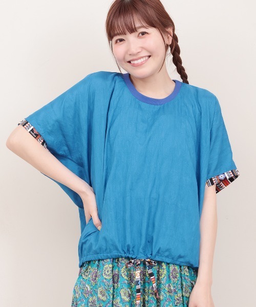 ふわっと風を纏う♪楊柳素材の軽やかブラウス ■デザイン キレイめながら、カジュアルに着こなせるプルオーバー。 首元は伸縮性のあるリブを、裾にはシルエットに変化をつけられるドロストを付けました。 袖部分とドロスト部分にはチチカカらしい華やかな幾何学生地でアクセントをプラス☆ シワの入った柔らかな楊柳素材はシワを気にせず着られて、他にはない落ち着いた存在感を放ちます。 ■サイズ感 レディースフリーサイズ 身体のラインをカバーしてくれる、ポンチョの様なたっぷりとした身幅になっています。 ■素材感 軽やかな楊柳素材を使用しています。 とろみ感がありしっとりとした肌触り。 ■スタイリング カジュアルなデニムから、キレイめなタックパンツまでコーディネートしやすい1枚。 シンプルなトップスなので、柄がたっぷり入ったスカートやパンツとの相性抜群です。 ■カラー ベージュ/ブルー/マスタード ■お手入れ 洗濯機可/ドライクリーニング --------------------------------- 透け感:透けない 伸縮性:あり 裏地 :なし 光沢 :あり 生地の厚さ:薄手 ポケット:なし --------------------------------- 【TITICACAのお買いものをお楽しみいただくために!】 ▼商品のお気に入り登録 完売カラーの再入荷通知や、ラスト1点の通知、セールの通知も受け取ることができます。 ▼ブランドのお気に入り登録 新商品や再入荷など、いち早くブランドのお得な情報を受けることができます!