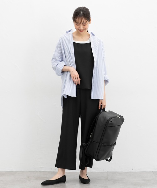 1枚でサマになる【デザイン】トップスとボトムスの合わせに悩まず、1枚でセットアップ風スタイルが決まるデザイン。女性らしい抜け感をのある、はほどよく開いたバックスタイル。自分にぴったりが見つかる、S~3Lまで揃った豊富なサイズ展開。【素材・機能】環境に優しい再生ポリエステルを使用した、滑らかで落ち感のある素材。肩ひもはアジャスター付きで、お好みの長さに調節可能。【スタイル】タンクトップやTシャツ合わせはもちろん、ブラウスや薄手のニット合わせ、ジャケットやシャツを羽織ったりと、ロングシーズン活躍。●裏地/上前身頃のみあり※後中心ファスナー開き品番:557-76-0966