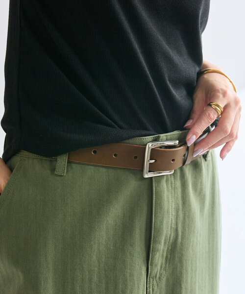 デイリー使いしやすいシンプルベルト ●デザイン シルバーのスクエアバックルがアクセントになるベルト。 太巾のベルトがシンプルなコーディネートにメリハリをつけてくれます。 ベルト穴は8穴つけているのでウエストの位置の調整も◎ 洗練された雰囲気ながら、主張しすぎずスタイリングに取り入れやすいアイテムです。 ●サイズ 幅:3cm レザー全長:104.5cm ウエスト:73cm~90cm ●素材 牛革 【MONN.:. (モン)】 シナモン カルダモン 好きなスパイスの語尾から抜き取って・・・ ほんの少し加えただけで その姿こそ見せなくても 香り、味わいも抜群の存在感を発揮するスパイスのような しょっぱい料理や甘いお菓子や飲み物に 無限の組み合わせの可能性があるスパイスのような 香った瞬間、味わった瞬間 ちょっとした刺激と幸福感に満たされるスパイスのような そんなお洋服があったらどんなに幸せなことだろう そんな想いを込めて生まれたブランドです。2022AWよりSTART。 -------------------------------------------------------------------------------- 【注意点】 ※画像の商品は光の照射や角度、お使いのモニター環境により、 実物と色味が異なる場合がございます。 ※入荷状況により、お届け予定が前後する場合があります。 ※お客様への発送が店頭販売より遅れる場合もあります。 ※追加生産商品は、一部の店舗、通販で販売中の場合がございます。 予めご了承下さい。 ---------------------------------------------------------------------- 【お買い物をもっと便利に楽しく♪】 ●「商品のお気に入り登録」で・・・ ラスト1点や再入荷の通知が届きます。 登録して頂いた商品だけが対象となる、あなただけのタイムセールが開催されることも! ●「ブランドのお気に入り登録」で・・・ 新商品や再入荷など、いち早くブランドのお得な情報を 受け取ることができますので、ご登録をおすすめします! --------------------------------------------------------------------------------