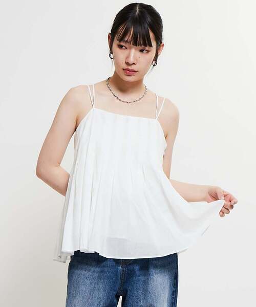 インド綿を使用した軽い着心地のキャミソール。 バスト周りはコンパクトに、裾周りはフレアーを出し、 着用時スッキリ見えるシルエット。 1枚でもレイヤードでも楽しめるアイテム。 インド製ならではのゴールドの糸を施した紐先もさりげないポイント。 ■fabric インド綿に縦シワ加工を施した素材。 ※撮影時のライティング、ご覧になっているモニター・PC環境により 実際の商品と色味が異なって見える場合がございます。 ご了承の上お買い求め下さい。