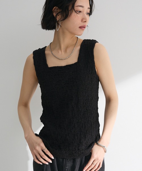 コーディネートのワンポイントに最適なポコポコ表面感のタンクトップ。程よく身体にフィットするコットンベースのストレッチ素材で、すっきりとしたシルエットを演出します。スクエア&ラウンドネックを楽しめる2WAY仕様なのも嬉しいポイント。1枚ではもちろん、シャツや薄手アウターと合わせることでヘルシーな肌見せが叶うおすすめのアイテムです。透け感[なし]生地の厚さ[薄手]光沢感[なし]伸縮性[あり]裏地[なし]ポケット[なし]※モデル着用画像は、光の当たり具合で色味が違って見える場合がございます。※お使いのモニター環境によって商品の色味が違って見える場合がございます。●Green Parks (fuuwa / topic / sara)●(グリーン パークス)20以上の人気ブランドを取り扱う、全国に約320店舗展開するアパレルセレクトショップ。ベーシックながらもさりげなくトレンドを取り入れたオリジナルブランドchocol raffine robeも展開。▼ 商品のお気に入り登録がおすすめです ▼商品ページ内のハートマークをクリック。完売時の再入荷や、最後の1点の通知、コーディネート画像がアップされたとき、お得なお値下げの際の通知を受ける事ができます。【お知らせ】ページでも通知が確認できます。
