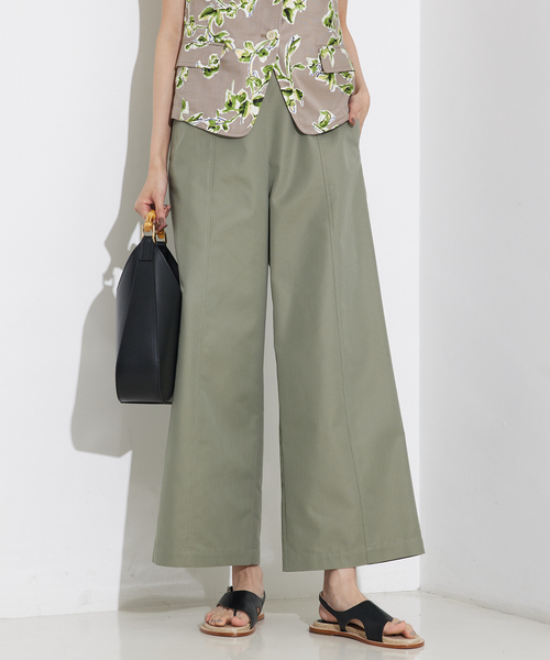 機能性と美シルエットを両立する万能パンツ *Detail* シワになりにくく、花粉防止機能を備えた撥水ツイル素材を採用。 環境にも配慮したサステナブルな素材で、快適な履き心地を実現。 腰周りはスッキリとさせつつ、程よいセミワイドシルエットが洗練された印象を演出。 *Coordinate* シンプルなシャツをインして、上品なオフィスカジュアルスタイルに。 トレンドのショート丈トップスを合わせれば、バランスの取れた旬な着こなしに。 足元はスニーカーやフラットシューズで抜け感を出し、軽やかなコーデを楽しんで。 クリーニング方法:手洗い可 【商品のお気に入り登録】 完売カラーの再入荷通知や、ラスト1点の通知、プライスダウンしたセール通知も受け取ることができます。 【ブランドのお気に入り登録】 新作や再入荷等、いち早くブランドのお得な情報を受け取ることができます。