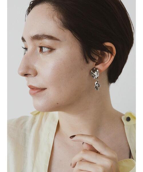 花びらのようなニュアンスのあるメタルパーツが目を惹くイヤリング。 揺れる動きのあるデザインで、顔周りを華やかな印象に演出してくれます。 カジュアルな日常使いから、デートや女子会にと幅広いシーンにも活躍してくれるアイテムです。 【その他採寸】 F 全長:[留め具]1cm