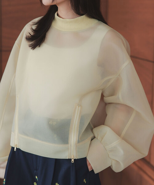レイヤードを楽しむシアーダンボールトップス。ゆるさのあるシルエットがラフな抜け感を演出し様々なインナー合わせと相性◎開閉できるフロントジップはコーデに合わせてアレンジできるアクセントデザインです。【素材・サイズ感】膨らみのあるハリ感が特徴のダンボール素材にシアータイプが新登場。モックネックはリブ地で切り替え、大人のカジュアルさをプラス。ボリューミーながら軽やかな立体フォルムが目を惹く着映えトップスです◎【STAFFコメント】透け感のある素材が大人可愛いシアートップス。キャミソール合わせはもちろん、ロゴTなど重ね着コーデを楽しめます。長袖なので夏の紫外線対策にも◎ボリュームスリーブもアクセントに。フロントファスナーで着こなしの幅が広がります。※【伸縮】なし/【淡色透け】あり/【濃色透け】あり/【裏地】なし《KOBE LETTUCE ー神戸レタスー》 プチプラレディースファッションからコスメまで、トレンドアイテムを豊富に取り揃えております。 毎シーズン発売されるインフルエンサーとのコラボ商品はSNSでも話題に。
