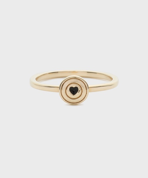 Nostalgic Memories誰もが心に大切にしまっている、懐かしいあの日の記憶。心に秘めた甘酸っぱい初恋の記憶。 ノスタルジックな思い出にインスパイアされた、いきいきと踊り出しそうなピンキーリング。 弓矢を構えるキューピッドの視線の先にある的がモチーフ。 程よく手元のポイントになる大きさのサークルの中心には、少し辛口なブラックカラーのエポキシ樹脂で小さなハートをあしらいました。 ※サイズ直し不可。
