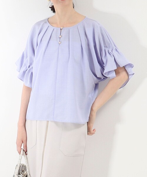 ◇25SS◇ MICO COULIER ◆Point ・立体感のある華やかなスリーブデザインが1枚で着映えする2wayプルオーバーブラウス ・前後2つのネックデザインが楽しめるどちらを前にしても着用可能なアイテム ・INしなくてもバランスのよい丈感 ・軽やかに見えるふんわりシルエット ・薄手でドライタッチのサップ生地を使用 ・さらりとしたナチュラルな風合いで清涼感があり涼しい着心地 ・しわになりにくく手洗い可能でお手入れが楽なのもポイント◎ ・スカート、パンツどちらにも合う万能ブラウスです <同生地シリーズ> ・サップタンブラーシャツ(5-0818-2-01-003) ・サップノーカラージャケット(5-0818-2-05-001) ・サップタンブラーワンピース(5-0818-2-07-001) ---------------------------------------------------------- 透け感:ラベンダー:ややあり、グレイッシュベージュ:若干あり、チャコールグレー:なし 裏地:なし 伸縮性:なし 光沢感:なし 洗濯:手洗い可 ---------------------------------------------------------- ●お取扱い上のご注意● 末永くご愛用頂くために、アテンションタグを必ずご確認の上、着用又はお取り扱い下さい。 気になる商品は、お気に入り登録がオススメです! クーポン情報、入荷情報が、通知されるようになります。 ※店頭及び屋外での撮影画像は、光の当たり具合で色味が違って見える場合があります。商品の色味は、スタジオ撮影の画像をご参照下さい。 ※商品画像に関しては出来る限り忠実に表示出来るよう努めておりますが、お客様がご利用のモニターの設定及び特性により、実際の商品と比較し色味に若干の誤差が生じる場合があります。 ※製品洗い加工の商品は、多少の歪み、シワなどが見られたり、風合いやサイズ等が1枚1枚異なります。汗や雨等で濡れた時や、摩擦により色落ちし、他の衣料を汚すことがありますので(特に濃色のもの)ご注意ください。