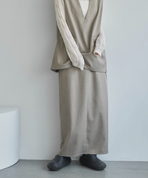 ◆Detailスラックスのようにハンサムに着られる、汎用性の高いスカート。タイトなシルエットですが、ヒップラインを拾いすぎない絶妙なサイジングで見た目以上の履きやすさ◎深めに入ったバックスリットの効果で足さばき良くご着用いただけます。キレイめやモードな雰囲気できるのはもちろん、カジュアルアイテムとも好相性です。また、同生地を使用したプルオーバーとのセットアップ着用もおすすめです。■【セットアップ可】Vネックプルオーバー/問い合わせ番号:91139620◆Fabric--------------------------透け感:なし伸縮性:ややあり光沢:なし裏地:なしポケット:あり生地の厚さ:★★★☆☆--------------------------※汗や水、摩擦により他のものに色移りすることがありますのでご注意ください。※濃色製品は色移りすることがありますので、他の物と分けて洗濯してください。※生産時期によりサイズや質感・色味に若干の個体差がみられる場合がございます。※商品画像は、光の当たり具合やパソコンなどの閲覧環境により、実際の色味と異なって見える場合がございます。予めご了承ください。※着用、お取り扱いの際は、商品についている品質表示とアテンションタグを必ずご確認ください。◆Information欲しいitemをお気に入り登録(♡マークをclick) ・お買いのがし対策…完売itemの再入荷やラスト1点の情報をお知らせ ・欲しいitemをお得にget…pricedownになったらいち早くお知らせ ・スムーズ検索…ZOZOのお気に入りアイテムページで簡単checkできるから、再検索不要♪
