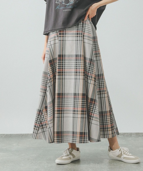 たっぷりボリュームが可愛い ・機能/素材 イージーケア イージードライ 接触冷感 毛羽感を抑えて仕上げたキレイ目コットンライクポリ ・デザイン 裾に向かって広がるフレアで、シンプルながら着映えするシルエットが魅力のスカート。 フレアはたっぷりと入れながら、腰回りのボリュームを調整し広がりを抑えています。 前ベルトはすっきり、後ろベルトはゴムギャザー仕様でキレイ見えしながら着心地は楽ちん。 無地はベーシックカラー、柄は大人めチェックでそれぞれ楽しめるバリエーションでご用意しています。 無地は裏地付きで安心。 ・お勧めスタイリング Tシャツと合わせたシンプルコーデでも着映えします。 シワが気になりにくいので旅行等にも便利。 ----------------------------- 透け感:やや透ける 伸縮性:なし 生地感・厚さ:普通 裏地:なし ----------------------------- ・ベージュで計測しています。 (こちらは参考情報となります。カラーにより多少の誤差がございます。) ・ブラックとカーキは裏地がございます。 ・お買い物が便利になる機能がたくさん ・商品のお気に入り登録 完売アイテムの再入荷通知、ラスト1点、またクーポンやお値下げ通知をお知らせします。 ・ブランドのお気に入り登録 新商品や再入荷のお知らせ等、いち早くブランドのお得な情報を受け取ることができます。 ぜひご登録ください。