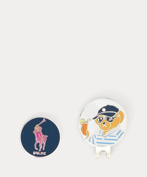 Poloベアとシグネチャーのポニーが特徴的なマグネットのゴルフボールマーカー。ベースにはキャップやベルトに取り付けられるクリップ付き。 ・マグネットのゴルフボールマーカーとベース / ベースの裏面にクリップ。 ・マーカーに"RLX"とシグネチャーのポニー / ベースにPoloベア。 ・マーカー ・ベース ・汚れは柔らかな布で乾拭きしてください。 ※商品の色味は、光のあたり具合など諸条件により色感が多少異なって見える場合がございますので予めご了承下さい。