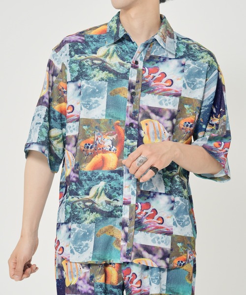 【サッカー 総柄シャツ】どれもインパクトのあるイヌ柄/ネコ柄/モノトーン柄/リゾート柄。イヌネコ好き、柄物や個性的なアイテムがお好きな方におすすめの一枚!速乾性に優れ、汗をかくシーンでも快適な着心地が続く素材感です。サッカー素材で見た目にも涼しく、軽くさらりとした肌触り。普段使いにはもちろんストレスフリーな着心地でルームウェアにもぴったりです。同一素材でセットアップ可能なショーツも展開しております。柴犬/パグ/ダルメシアン/ダックスフンド/黒猫/三毛猫/リゾート/ハイビスカス