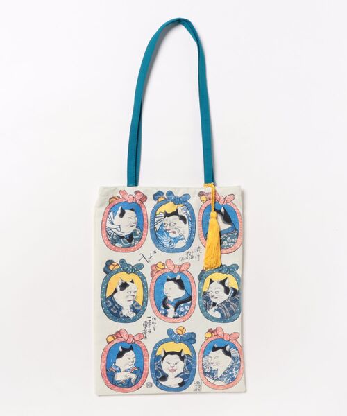 NIPPON ART 浮世絵をリデザイン野に、山に、川に。そして街歩きのお供にも◎浮世絵を大胆にプリントしたA3サイズのトートバッグが登場。大振りなタッセルがアクセントに。長めの持ち手で、肩にしっかり掛けられます。日本のお土産としても◎・内ポケット付き。●その他1:歌川芳藤《五拾三次之内猫之怪》●その他2:歌川国芳《相馬の古内裏 がしゃ髑髏》●その他3:葛飾北斎《八方睨み鳳凰図》●その他4:歌川国芳《流行猫のおも入》●その他5:歌川国芳《宮本武蔵の鯨退治》他●その他6:歌川芳藤《新版 猫の温泉》◆カヤ◆古くから伝わる日本の伝統と新しい文化の融合。「新しいカタチの日本」に出会える倭物ブランド【カヤ】「文明開化」をテーマに、倭モダンで色彩あふれる刺激的な和雑貨を提案していきます。※こちらの商品は1点1点職人による手作りとなります。その為、形や色合いなど若干異なる場合がございます。あらかじめご了承ください。※屋外での撮影画像は、光の当たり具合で色味・カラーが違って見える場合がございます。商品のカラーは、スタジオ撮影の画像をご参照ください。Amina Collection Co.,LTD.