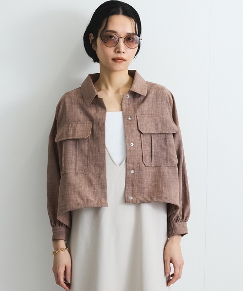 ●POINT 立体的なフラップポケットデザインが目を引く、 ウエストドローコードデザインでボクシーなシルエットのシャツブルゾンです。 セミシアーな素材感で、ドロップショルダーでゆとりのあるサイズ感でまとわりつきにくく、 SSシーズン通じて、軽めの羽織物として、日除け対策や空調対策におすすめのアイテムです。 また、袖先は腕まくりにも便利な部分ゴムギャザー仕様になっています。 ●FABRIC 表面感のあるナチュラルな質感の麻調のワッシャー素材を使用しています。 シワの目立ちにくいイージーテキスタイルです。 ---------------------------------- 透け感:ややあり 厚さ: 普通 伸縮性:なし 裏地: なし ポケット: あり ---------------------------------- ---------------------------------------------------------------- 洗濯方法 家庭洗濯:液温は40℃を限度とし、手洗いができる。 自然乾燥:日蔭の吊り干しがよい。 アイロン:底面温度120℃を限度としてアイロン仕上げができる。 ドライクリーニング:石油系溶剤による弱いドライクリーニングができる。 ---------------------------------------------------------------- ■モデル身長 165cm 着用サイズ M ※画像の商品はサンプルとなりますので実際の商品と仕様、加工、サイズが若干異なる場合がございます。 ※お客様のモニター環境により実際のお色と多少異なる場合がございます。 ※撮影状況や光の当たり具合により、色合いが異なって見える場合がございます。 ▼商品のお気に入り登録 ハートマークをクリックし、お好きなカラーを選んでお気に入りに登録 完売カラーの再入荷通知や、ラスト1点の通知、セールの通知も受け取ることができます。 ▼ブランドのお気に入り登録 新商品や再入荷等、いち早くブランドのお得な情報を受け取ることができます。