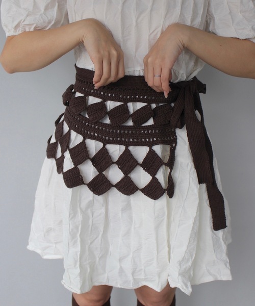 ざっくり編まれた立体的な編み模様が目を引く、ニット素材のラップベルト。透かし編みと太めのテープ状デザインが重なり合い、腰まわりにボリュームと動きをプラスしてくれるアクセントアイテムです。しっかりとした編地ながら柔らかくフィットし、ウエストマークすることでスタイルアップ効果も抜群。ワンピースやビッグTに巻いてシルエットにメリハリを出したり、パンツの上にレイヤードして立体感のあるコーデに仕上げるのもおすすめ。ラフさと手仕事の温もりが共存する、スタイリングの主役にもなる一点もののような存在感が魅力です。普段のコーデに“ひとクセ”を加えたい時にぴったりなアイテム。仕様:ラップスカート伸縮性: あり透け感: なし光沢: なし裏地: 通常厚さ: 通常サイズ感:通常【SANSëLF】▼お気に入り登録をおすすめします▼♡をクリック!お得なセール情報や、人気完売商品の再入荷情報ラスト1点の通知など、耳寄りなお買い得情報をいち早く受ける事ができます。ブランド【SANSëLF】のお気に入り登録もご一緒にお願い致します。▪︎取扱注意事項※サイズは、測定方法と測定者によって多少の誤差がありますのでご了承下さいませ。 また体型によって、サイズ感に個人差がございます。(平置き採寸)※商品によってはシワがつきやすく、畳みジワや折りジワなどが強く出る場合がございます。その際は加湿した風呂場に数時間干すか、スチームアイロンでのお手入れをお勧めしております。※生地の素材上、においが気になる場合がございます。 その際は陰干しして頂くと、ほとんど感じにくくなります。※レース等の繊細な素材を使用している場合には、お取り扱いにご注意下さい。※デニムを使用した製品は、インディゴ染めをしています。汗や摩擦により移染しやすいので、白色、淡色の組み合わせや重ね着はお避け下さい。※ニット素材を使用した製品は、重みで伸びやすくなりますのでハンガーでの保管はお控えください。※お洗濯の際には、品質表示の指示に従ってください。必要であれば専門店にご相談ください。家庭でご洗濯できる商品に関しては、洗濯専用ネットをご使用の上、個別での洗濯をお勧めいたします。 お色物は、色移りする可能性がございます。※着用画像は撮影状況や光によって、多少異なる場合がございますので、置き画像をご確認下さい。※2023年7月1日より、環境に配慮した取り組みの一環として、紙のアテンションタグを廃止しております。