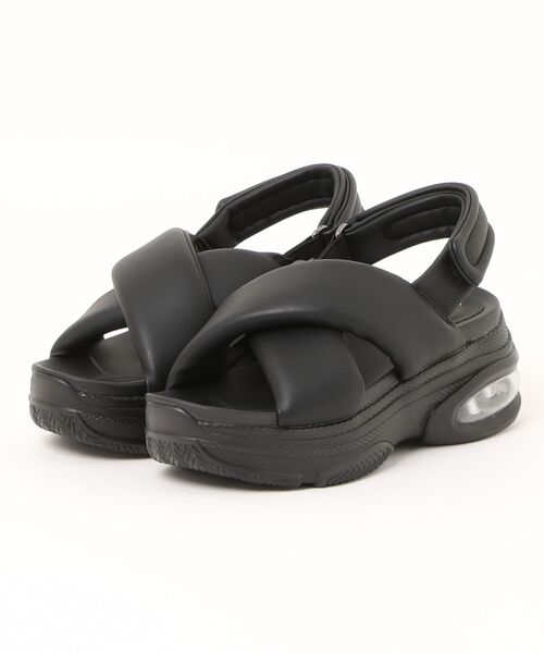 エア入りのボリュームソールが、足元に存在感をプラスするスポーティサンダル。 ふわもこパフィなアッパーを組み合わせ、大人可愛い足元を演出。 ぷっくり立体感のあるクロスベルトが目を惹くデザイン。 ベルトにふかふかのスポンジを内蔵し、足に柔らかくフィットして素足でも優しい足あたり♪ また踵ベルト内側にゴムを採用し、ラクに脱ぎ履きできるうえ、バックベルトで調節も可能◎ さらに人気の厚底が無理のないスタイルアップをアシスト。 厚みのあるプラットフォームソールが高い衝撃吸収性を発揮し、クッションの効いた柔らかな履き心地と、安定感のあるフラットな歩きやすさを提供♪ もちもちのクッションインソールが足裏に優しくフィットします。 サンダルながらスニーカーのような柔らかな履き心地で、デイリーにもたくさん歩くお出かけやトラベルにも、様々なシーンで活躍します。 ●サイズ換算目安:S(22-22.5cm)・M(23-23.5cm)・L(24-24.5cm)・LL(25cm) ・素材:合成皮革 ・アウトソール:合成底 ・ヒールの高さ:約7.0cm ・重量(片足):約335g(Mサイズ) ・サイズ感:標準(個人差がございますので目安です)