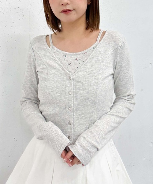 ■これ1枚でお洒落見え!■ こなれたレイヤードスタイルが決まる、アメスリキャミソールとカーディガンのアンサンブル。 セットではもちろん、別々でも着まわせます。 カーディガンはトレンドライクなコンパクト丈。 立体的な切替で体のラインがきれいに見えるのも嬉しいポイント! デニムと合わせてカジュアルに。 スカートと合わせれば甘めのスタイリングに。 スウェットと合わせたトレンドのスタイリングもおすすめ◎ 様々なボトムとのコーディネートを楽しめます。 ーーーーーーーーーーーーーーー 透け感:オフホワイトややあり 裏地:なし 伸縮性:あり 光沢感:なし 生地厚さ:普通 洗濯方法:洗濯可 ※詳しいお手入れ方法は商品についているタグをご覧ください ーーーーーーーーーーーーーーー ※ご利用のモニター環境により、実際の色味と多少異なる場合がございます。 … information … 欲しいitemをお気に入り登録(♡マークをclick) ・お買いのがし対策…完売itemの再入荷やラスト1点の情報をお知らせ ・欲しいitemをお得にget…pricedownになったらいち早くお知らせ ・スムーズ検索…ZOZOのお気に入りアイテムページで簡単checkできるから、再検索不要♪
