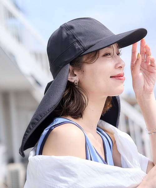 ーーー シェルテックという多機能生地を使用した夏にピッタリのキャップ。 取り外し型のサンシェードが付きで、気になる首の後ろもカバーしてくれます。 髪を結んでも被りやすい嬉しいデザイン! 夏の暑い日差しを避けるのに便利なアイテムです。 ーーー ■シェルテック機能 ・遮熱 ・紫外線防止 ・接触冷感 ・吸水速乾 ・軽量