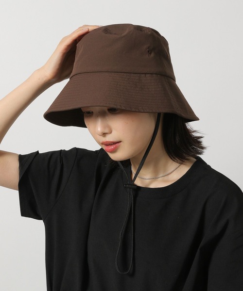 やや光沢感のある素材で、高見えするデザインに仕上げたサファリハット。アクティブなレジャーシーンはもちろん、雨の日なども活躍するアイテムです。内側にはアジャスター付きで、フィット感の微調整が可能です。アクセントになるコード紐は、取り外しできるのでスタイリングに合わせてお使いいただけます。