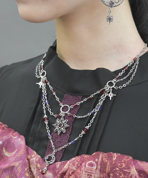 【アイテム説明】 POETIQUE Arabian Nights collection♡ 今宵も語りましょう...神秘的なお話を...。 千夜一夜物語をイメージしたロマンティックなシリーズ♡ 【デザイン】 太陽と月のモチーフをあしらったネックレスです。 ビジューやビーズを使用したしゃらりと繊細なデザインがポイントです。 太陽の様に輝く華やかなゴールドと夜の闇の様にダークな雰囲気のアンティークシルバーの2色展開でご用意しております。 短めのネックレスで首元を華やかに飾ってくれます。 【コーディネート】 こちらは同シリーズのアラビアンナイト肩あきワンピース(TS351X60P)などと合わせたコーデがおすすめです。 オリエンタルな雰囲気たっぷりで推し活などのイベントにもピッタリ♪ ▽ axes femme POETIQUE * アクシーズファムポエティック 【Concept】 誰かと同じになりたくない 型にはまらず 自分の好きなものを追求していく 可愛いだけでは満足できないあなたの為のファッションブランド ********************** .。.: お気に入り登録のおすすめ :.。. ∇気になるアイテムを登録∇ ハートをクリックしてお気に入りに登録すると 完売カラーの再入荷やラスト1点の通知、セールの通知を受けとることができます。 ∇ブランドを登録∇ 新商品や再入荷、セール通知など、いち早くブランドの情報を受けとることができます。 是非ご利用頂き、お買い物をお楽しみ下さい。 .。.: 商品について :.。. ・サイト上のカラー名と、お届け商品に記載されているカラー名が異なる場合がございます。 ・商品の色味は、撮影場所や光のあたり具合、お客様のお使いのPCのモニター環境などにより色味が違って見える場合がございます。 予めご了承の上ご注文下さい。 .。.: 返品・キャンセルについて :.。. ・着用、洗濯後の返品は致かねます。 ・商品到着後、着用前に商品を確認して頂きますようお願い致します。