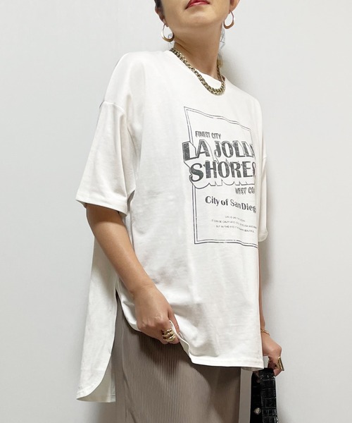 ◆インパクトのあるロゴプリントがかわいい◆ 【ディテール】デイリーコーデに使えるプリントTシャツ。フロントのスクエアロゴプリントがコーデのアクセントになってくれます。ゆったりとしたオーバーサイジングがトレンド感のある1枚。ラウンドヘムとサイドスリットがおしゃれなシルエットです。 【ファブリック】 綿天竺のナチュラルな着心地が夏にぴったりです。 【スタイリング】 パンツ、スカートなどボトムを選ばずコーディネートしていただけます。 【クリーニング】 手洗い可