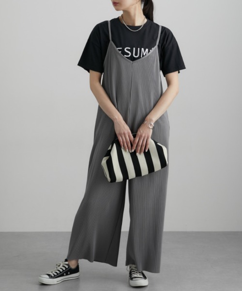 ■デザインプリーツで仕立てたサロペットパンツ。 インナーやはおりで調整できるので春から初秋まで着まわせるトレンドアイテム ■素材 細かめのプリーツなのでカジュアルすぎず上品な印象。 しわも目立ちにくいのでオフィスカジュアルにも◎ ■おすすめのスタイリング キャミデザインなのでインナーにタンクトップを合わせたりTシャツを合わせたり、コーデのバリエが多く着まわしやすいパンツです <仕様> ポリエステル100% <洗濯方法> 洗濯機OK ネット使用 ■キーワード 20代、30代、40代、きれいめカジュアル、きれかじ、オフィスカジュアル、キレカジ、サロペット、パンツ、ファッション、ボトムス、レディース、夏、大人、大人カジュアル、通勤カジュアル