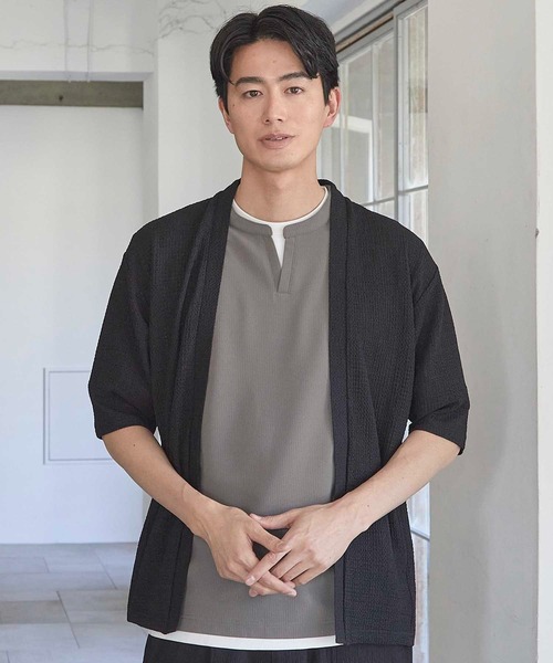 夏の空気をまとうカーディガン。軽くて涼しい、“Tシャツの上の最適解”。 【特徴】 ・Tシャツ1枚の季節にさらりと羽織れる5分袖ボタンレスカーディガン ・透け感のあるシアー素材が、夏のレイヤードにちょうどいい抜け感を演出 ・生地表面に凹凸のある編み地で、肌への接地面が少なく快適な着心地 ・通気性に優れた素材感で、汗ばむ季節にもベタつきにくく快適 ・前立てのないボタンレス仕様で、さっと羽織れてストレスフリー ・シンプルなデザインながら、素材感でしっかり洒落感をプラス 【コーディネート提案】 ・無地Tシャツ×ワイドパンツに羽織るだけで、夏のレイヤードコーデが完成 ・タンクトップ+ショーツに重ねて、ラフさの中に大人っぽさをプラス ・ワントーンコーデに取り入れて、素材の違いで立体感を演出 ・アクセやサンダルを加えるだけで、こなれたリゾートスタイルにも◎ ・持ち運びにも便利なので、冷房対策や日除けとしても活躍 【UNION STATION/ ユニオンステーション】 「さりげない上品さ」をキーワードに大人に向けた、素材感と着心地にこだわったアイテムを展開。 肩ひじを張らずに自分に合ったおしゃれを楽しめる、きれいめスタイルを提案します。 私たちは服を通してみなさまの心が明るくなったりワクワクしたり、ささやかな高揚感を感じていただけるような”おしゃれ着”をお届けします。