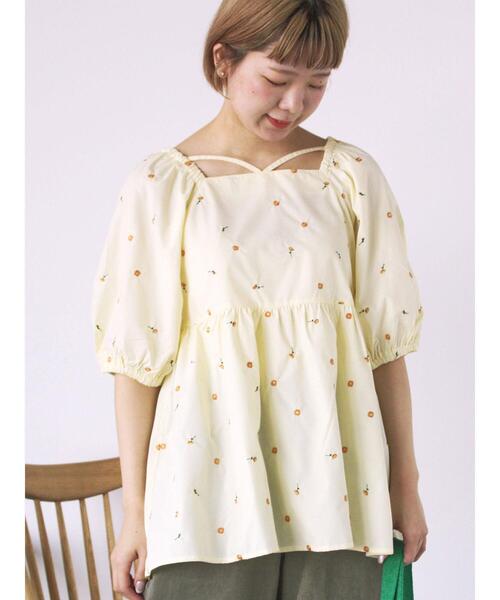 花柄の刺繍が散りばめられた生地はehkaファン必見な1着 刺繍は、カラー毎に組み合わせが違うので、お気に入りを見つけてください♪首元は一癖あるスクエアネックのデザインでガーリーな印象に。お尻が隠れる長さなので体形を気にせず着用することが出来ます。ギャザーがたっぷりと入ったデザインなので、ストンと落ち感のあるパンツとのコーディネートがオススメです!※商品画像は、撮影環境やお客様のご利用のPC・スマートフォンのモニター環境などにより実物と色味に差異がある場合がございます。※発売予定は数日前後する場合がございます。予めご了承ください。【その他採寸】F 着丈:[前]60cm[後]64cm