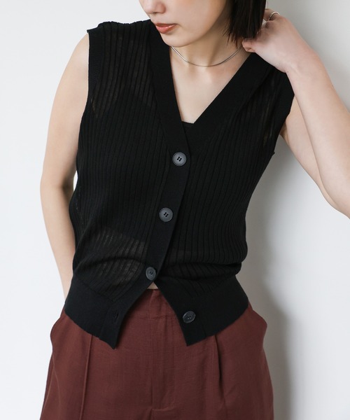 【 SELECT MOCA Et 】 SELECT MOCAから大人ブランド「Et / エト」が登場。 大人の女性の悩みや願望に共感し、寄り添ったデザインを届けたい。 スタイルの変化や生活スタイルの変化に合わせて選びたくなる服を作りたい。 そんな想いを込めて、心地よく、輝く大人でいられるスタイルをご提案します。 -point & styling- 清涼感あるシアー素材がこれからのシーズンに最適なニットベスト。 顔周りをすっきり見せてくれるVネックデザインで 角度によって煌めくラメがスタイリングに華やかさをプラス。 肩巾のサイズ感にこだわり 腕や肩が大人っぽく華奢見えするよう仕上げました。 手洗いに対応したウォッシャブル素材でご自宅で洗濯できるのも嬉しいポイント。 ボタンはボトムのウエスト位置に合わせて 裾を少し開けて抜け感を出した着こなしがおすすめ。 長い夏にTシャツ感覚で1枚で着るのはもちろん ジャケットやブラウスのインナーとしても活躍してくれる1枚です。 シャイニーシアーベストVネックボタンレイヤードニットオフィスカジュアル ---------------------------- 素材 ポリエステル100% ---------------------------- 伸縮性 ★★★☆☆ 裏地 なし ---------------------------- ※モニター・環境等により実際の商品と多少色味が異なって表示される場合がございます。 予めご了承をお願いいたします。 ======================= ■袋梱包の為、染料による特有の匂いが抜けきれず、匂いがする場合がございますが不良品にはあたりません。 上記注意点での返品、交換はお断りします。ご了承の上お買い求めくださいませ。 ■本製品は生産過程におきまして色味、サイズ感等若干の誤差が出る場合がございます。予めご了承くださいませ。 ======================= 【お買いものをお楽しみいただく為に!】 ▼商品のお気に入り登録 完売カラーの再入荷通知や、ラスト1点の通知、セールの通知も受け取ることができます。 ▼ブランドのお気に入り登録 新商品や再入荷など、いち早くブランドのお得な情報を受け取ることができます!