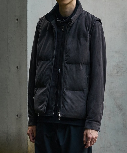 素材、パターン、着心地のすべてにこだわった「究極のレザーダウンベスト」を追い求めて製作された一着 【デザイン】 ・イタリア、フィレンツェ近郊の町ヴィンチでファーガーメントとレザーガーメントの工房として創業したイタリア製ラグジュアリーアウターブランド「EMMETI(エンメティ)」に、ARKnetsのエクスクルーシブライン「ONLY ARK」として別注した「ISE - CAMOSCIO 0.5mm -」 ・EMMETI×ARKnetsの別注定番モデルに微調整を加えて、新たにリニューアルしたレザーダウンベスト「新生ISE」 【ONLY ARK(別注)ポイント】 ・素材、パターン、着心地のすべてにこだわった「究極のレザーダウンベスト」を追い求めて製作された一着 ・シャツ、カットソー、スウェット、ニットなど幅広いアイテムとのレイヤードはもちろん、EMMETIの代表的なレザージャケット「JURI」と合わせたレザーオンレザーのレイヤードスタイルもおすすめ ・襟裏にはカシミヤ混ライトメルトンを使用することで、着用時の保温性を向上し、ストレスのない肌あたりを実現 ・三日月にはシボ革のラムレザー「NAPPA MANGA」を使用し、異なる素材で魅せるコントラストを表現 【素材】 ・イタリアで丁寧に鞣されたトップクラスの品質を誇るゴートスウェード(山羊革)のCAMOSCIO(カモーショ)を使用 ・銀面を削いで薄く仕上げられたゴートスウェードは、軽く、柔らかでベルベットのような滑らかな手触りが特徴 ・毛足が短く滑らかな質感に仕上げられたスウェード素材はドレープ感が美しく、新品の状態からこなれた雰囲気を演出してくれる ・三日月にはシボ革のラムレザー「NAPPA MANGA」を使用 ・襟裏には優しい肌触りのカシミヤ混ライトメルトンを使用 【シルエット・サイズ】 ・ほど良くゆとりを持たせたボックスシルエット ・前回のモデルから着丈を長く調整したことで、別注JURI ARKとのレイヤード時は同サイズでジャストなバランスになるように仕上げている 【アテンション】 ・天然革を使用しているため、1点1点革の風合いが異なる場合がありますのであらかじめご了承ください。 【その他】 ・独自な製法で作り上げられた革は、着用を繰り返すことで革に含まれた油分が動き、より馴染みが良くなり、着用者の体型に合わせて革本来の「味」が出てきます。 ・エンメティの最大の特徴は、繊細で品のあるエイジング。着用を重ねるうえでの経年変化をお楽しみください。 【WEBメディア掲載】 ・UOMO 【商品画像について】 ・閲覧環境や撮影環境による光の違いにより、掲載画像は実際の色と異なって見える場合がございます。(商品の色調は白背景の商品単体画像をご参照ください。)