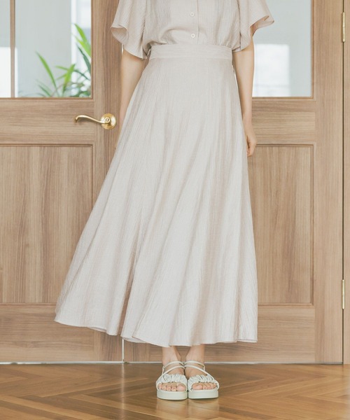 ーーー ラメ感のある楊柳素材を使用した、 上品見えが叶うフレアスカート ーーー ■point ・歩くたびにふわっと揺れ広がるフレアシルエット ・さりげないキラっとしたラメが上品な印象に ・表面感のある生地でシンプルになりすぎず、こなれた着こなしが楽しめます ・清涼感のあるさらりとした素材で夏らしい印象で着用できます ■styling 同素材のトップス(品番:495792)とのセットアップコーデがイチオシ。ワンピース風に着用できます。 一枚でフェミニンムードを高められるため、あえてTシャツでカジュアルダウンした大人かわいい着こなしもおすすめです。 ※屋外の光や照明の当たり具合で、実際の商品の色味とカラー別画像の色味に若干の違いが発生する場合がございます。 詳細画像と併せてご確認の上、ご注文いただきますようお願い致します。 【INFORMATION】 ■商品のお気に入り登録 完売していても再入荷時に再入荷通知を受け取ることができますので、是非ご登録ください! ■ブランドのお気に入り登録 新商品や再入荷などの情報を受け取ることができますので、是非ご登録ください!