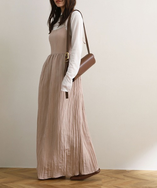 《大人気インフルエンサー@coco_boy0113さんとのコラボアイテム第3弾》 バックリボンが可愛らしいキャミワンピースが登場! 楊柳加工とくすみカラーでオトナ可愛い主役ワンピースに仕上げました♪ ウエスト切替により上半身はすっきり見せつつ、スカートのボリューム感が腰回りの体型カバーも叶えます◎ Tシャツやシアートップス・タンクなど様々なレイヤードができ、 春先から晩夏までロングシーズン楽しめる1着が完成しました。 【サイズ】 M / Lサイズ 総丈:109 / 118cm 総丈(肩紐あり):120-131 / 129-140cm 身幅:36 / 39cm 裾幅:88 / 88cm 【モデル着用サイズ / 身長】 coco_boy0113さん:Mサイズ / 154cm coco_boy0113さん横モデルさん:Mサイズ / 151cm モデル:ブラウン Mサイズ / キナリ(エクリュ)・ピンク(ダスティピンク) Lサイズ / 160cm 【素材】 ポリエステル 76% ナイロン 24% 【カラー】 キナリ(エクリュ) / ピンク(ダスティピンク) / ブラウン 【備考】 ・透け感なし / 伸縮性なし / 裏地あり / ポケットあり ※ご利用の端末環境により、商品画像と実物では多少色合いが異なって見える場合がございます。 ※お洗濯、アイロンの際は内タグの品質表示を必ずご確認ください。 ※商品にはたたみシワ等のシワがついている場合がございます。 ※染料による匂いが抜けきれず、特有の匂いがする場合がございます。 -NOAHL(ノアル) - 「今ワタシたちが本当に着たい服」 ニュアンスカラーをベースに、自然体で女性らしい雰囲気を。 決まりすぎないこなれ感のあるスタイルにこだわり シンプルなのにどこかおしゃれを感じる “センスよく魅せる1着”を提案します。 どんな瞬間もナチュラルに彩り 柔らかに纏う日常に。 -商品のお気に入り登録- 完売カラーの再入荷通知や、ラスト1点、セールの通知をお知らせいたします。 -ブランドお気に入り登録- 新商品や再入荷など、いち早くブランドの情報を受け取ることができます。