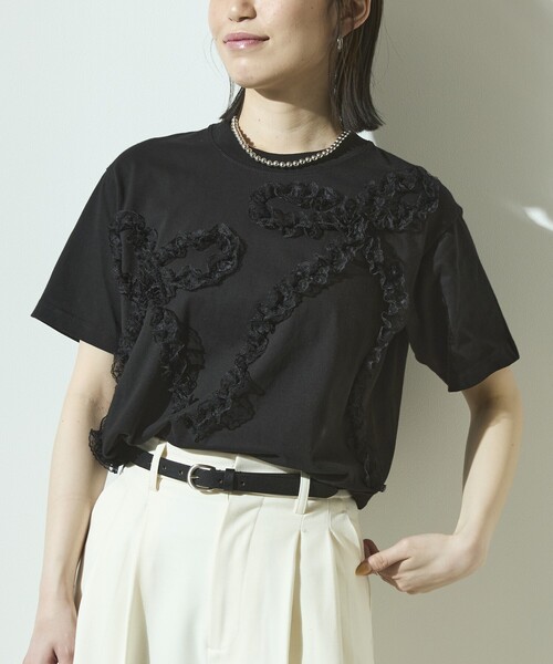 2025 Spring & Summer item レース×リボンを掛け合わせたデザインTシャツ ●レースでリボンのデザインを施した半袖TEE ●立体感のあるデザインがポイント ●トレンド感のあるデザインが印象的で、コーディネートの主役になるアイテム ●流行りのバレエコアや韓国風スタイルに馴染むデザイントップス ●程よくゆとりのあるリラックスフィットなので、普段使いしやすく、タックインアウトどちらもしやすいシルエット ●カジュアルにもフェミニンにも合わせやすいデザイントップスです おすすめコーディネート デニムやオーバーオールなどカジュアルアイテムと組み合わせることで、レースリボンがコーディネートのアクセントになってくれます。 IラインやAラインのフェミニンなスカートやワイドスラックスと合わせたフェミニンなスタイルもおすすめ。デザイン性が高く、リラックスシルエットなのでお手持ちのボトムスと合わせやすいアイテムです。 【環境に配慮したサステナブルアイテムです】 オーガニックコットンを使用したエコアイテムです。 ※こちらの商品は、弊社管理上のカラーを表記しております為、タグのカラー表記と異なる記載となっております。 【サイト表記:タグ表記】 その他/柄1:ホワイト/ブラック ※掲載画像の商品の色味は、屋外や屋内の光の照射や角度により実物と色味が異なる場合がございます。 また表示のサイズ感と実物は若干異なる場合もございますので、予めご了承ください。 ※着用、お取り扱いの際は、商品についている品質表示とアテンションタグを必ずご確認下さい。 【Firsthand / ファーストハンド】 Fashion , Sustainable , Art をテーマに、デザイン性やクォリティー、モノ作りなど、クリエイティブを重視したサステナブルなコンセプトストア。 ここでしか出会えないブランドやアイテム、ここでしかできない実体験、新しくスタイリッシュなカルチャーとファッションをここから発信していきます。 フリークスストア等を構えるデイトナインターナショナルから新たに発信されるブランドです。