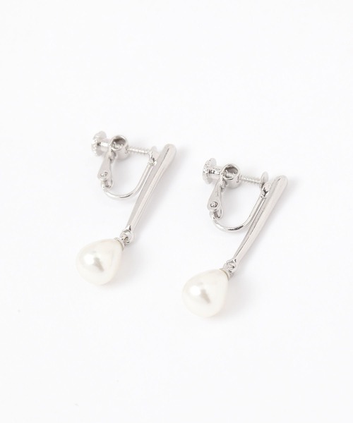 メタル素材のバーにドロップモチーフのパールを組み合わせたイヤリング。上品なデザインで、シーンを問わずにお使いいただけます。