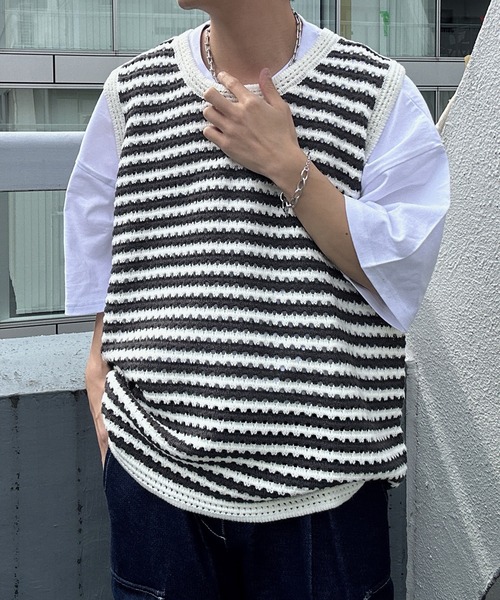 【CREARE -LINO-】ボーダーニットベスト <素材> 春夏に最適なドライタッチなニットベスト <デザイン・シルエット> ストリート感のあるビッグシルエットデザインで トレンド感のある着こなしと 存在感を発揮するボーダーニットベスト。 Tシャツとレイヤードするだけでこなれた雰囲気に。 透かし編み柄で夏らしさも◎ 配色によって雰囲気も変わるので お好みの配色をお選びいただけます。 サラッと着こなすだけで旬なスタイルに! 夏でも快適に着こなせるサマーニット素材です。 ※画像の商品はサンプルのため、実際の商品と仕様、加工、サイズ、素材が若干異なる場合がございます。 【CREARE -LINO- / クレアーレ リノ】 ブランド名のCREARE(クレアーレ)とはラテン語で『創造』を意味。自分らしさを大切にした自由な想像と ストリートモードのクリエーティブな感性を糸と糸が織り合わて生地になるようにクレアーレ独自の感性をミックスし、時代を超えたニュースタイルを提案する。 〈Instagram〉creare_lino新作情報やルックを配信中。 ■商品のお気に入り登録完売カラーの再入荷通知や、ラスト1点の通知、セールの通知も受けることができます。 ■ブランドのお気に入り登録新商品や再入荷等、いち早くブランドのお得な情報を受け取ることがきます。 ■注意事項※ご使用機器の環境や撮影環境により、画像と実際の商品とは多少色味や質感が異なって見える場合がございます。 また、表示のサイズ感と実物は若干異なる場合もございます。ご理解の程よろしくお願い致します。 ※ご注文いただいた予約商品のお届け時期の確認は、注文履歴ページより行えます。 ※他のキャンペーンにより、期間中に価格が変動する場合があります。※セールは予告なく終了させていただく場合もあります。