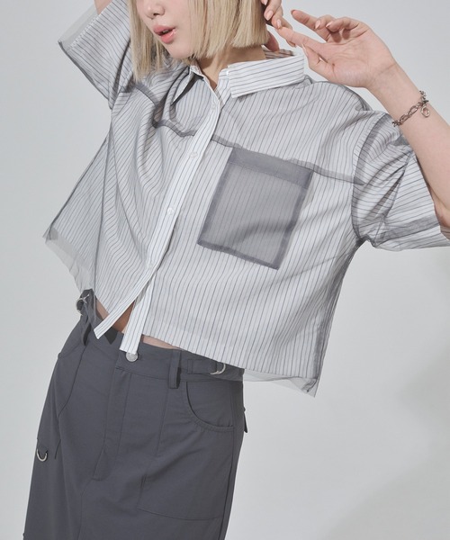 ■ポイントシャツにチュールを重ねたこなれ感たっぷりのシャツ!■ディティールボックスシルエットでモード感のあるシャツ。肘が隠れるほどの袖丈になっているので、二の腕カバーできるのが嬉しい。シャツの上にチュールが重なったデザインが他になく、スタイリングが華やかに!前ボタンを閉めてトップスとして、開けて羽織りとしても使えます。■スタイリングデニムで夏らしく清涼感のあるスタイリングがおすすめ!短すぎないショート丈なのでハイウエストボトムと合わせるとお腹が見えずスタイリングできます。▼商品のお気に入り登録完売カラーの再入荷通知や、ラスト1点の通知、セールの通知など商品の情報をいち早く受け取ることが出来ます。▼ブランドのお気に入り登録新商品や再入荷等、いち早くブランドのお得な情報を受け取ることが出来ます。