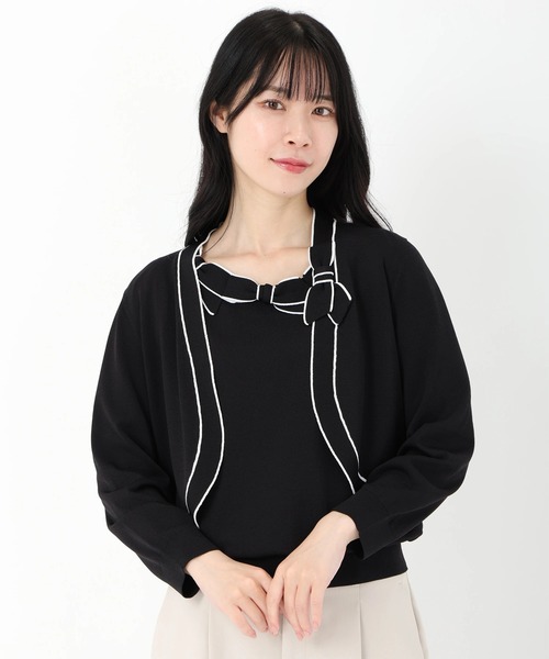 UNIVERVAL MUSE*ノアストレッチⅡフロントにあしらわれたリボンディテールが華やかなフェミニンボレロ。バイカラーの縁取りがさりげないアクセントとなり、シンプルながらも洗練された印象を与えます。コンパクトな丈感がスタイルアップをサポートし、上品なツヤ感が大人の女性らしさを引き立てます。ドレッシーなコーディネートにもぴったりで、ワンピースやドレッシーなトップスとの組み合わせで、特別な日のおしゃれに華を添えるアイテムです。洗濯:ドライクリーニング2025年 SUMMER LOOK BOOK掲載●おすすめシーンデートや女子会、誕生日会、お食事などのお呼ばれシーンなどにも。20代・30代・40代・50代まで幅広いシーンで着回せます。《お気に入り登録》はお得がいっぱい!「商品」のお気に入り登録で、再入荷、ラスト1点、セールなどお得な通知を受け取ることができます。「ブランド」のお気に入り登録で、新商品や再入荷などいち早くブランドの情報を受け取ることができます。是非、この機会にご登録くださいませ。
