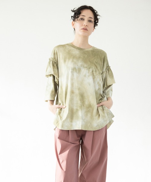 Spring Summer collectionピースフルで夏らしさが溢れるタイダイTシャツは、フリルのアクセントでラフに終わらせない。1枚でスタイリングのカギになる、存在感のあるアイテム。===========================透け感: なし伸縮性: あり光沢感: なし裏地: なし素材について: カジュアルな風合いのTシャツ地===========================【洗濯表示】 洗濯機可■商品のお気に入り登録クーポンやタイムセール、再入荷通知やラスト1点などお得な情報を受け取ることができます。ご登録をお忘れなく◎